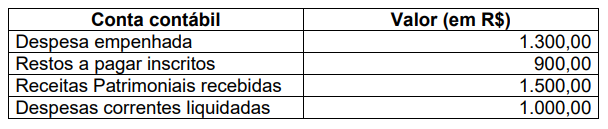 Com base nos dados, essa entidade apresentará um valor total de superávit financeiro de: