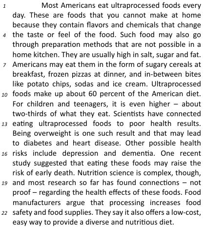Based on the information provided in the text and your knowledge of English grammar, judge the item below. The sentences “Most Americans eat ultraprocessed foods every day” and “These are foods that you cannot make at home” are in the past simple tense.