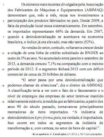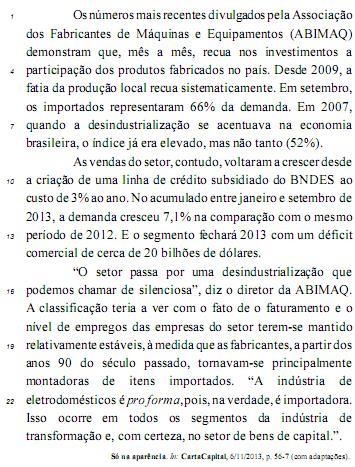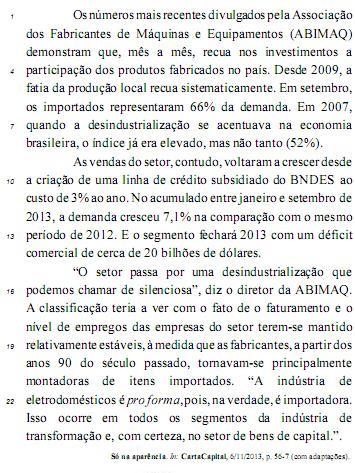 No trecho “à medida que as fabricantes, a partir dos anos 90 do século passado, tornavam-se principalmente montadoras de itens importados” (l.19-21), a expressão “à medida que” introduz uma oração que exprime ideia de conformidade.