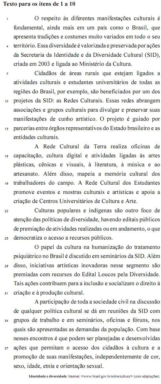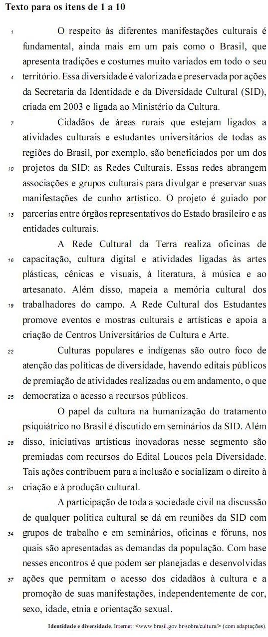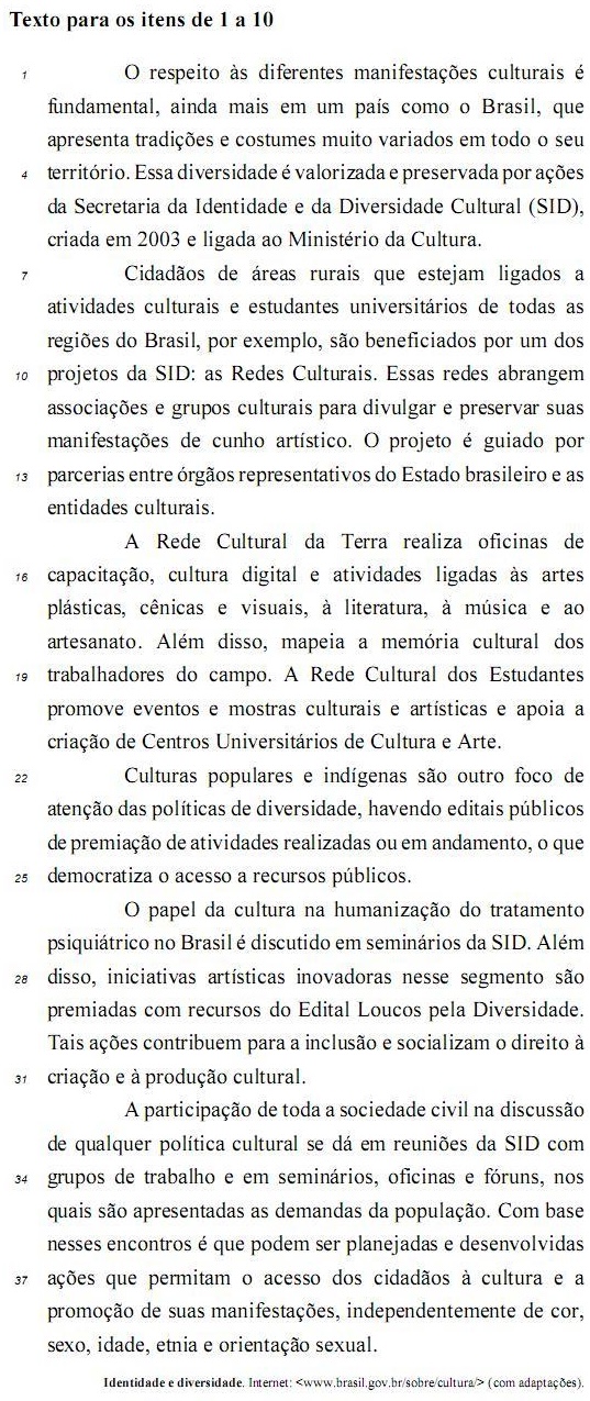 Mantêm-se as informações originais e a correção gramatical do texto caso o primeiro parágrafo seja assim reescrito:Em 2003, ligada ao Ministério da Cultura, com a finalidade de preservar e de valorizar as diferentes manifestações culturais, principalmente no Brasil, que têm tradições e costumes diversos, foi criada a Secretaria da Identidade e da Diversidade Cultural (SID).