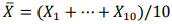 Considere que uma amostra aleatória simples de tamanho n = 10, representada como X 1 , … , X 10, seja retirada de uma população uniformemente distribuída no intervalo [ a , b ], em que a e b são parâmetros desconhecidos, tais que 0 < a < b . Com respeito a essa população, a média amostral