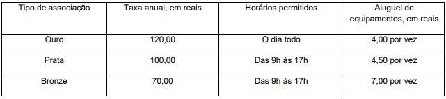 Atualmente, tenho uma assinatura Bronze e sei quantas vezes precisarei alugar equipamentos no próximo ano. Estou pensando em mudar para a assinatura Ouro ou Prata. Se eu fizer a mudança, o custo total para qualquer uma delas será o mesmo.