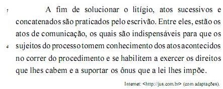 Não haveria prejuízo para a correção gramatical do texto nem para seu sentido caso o trecho “A fim de solucionar o litígio” (l.1) fosse substituído por Afim de dar solução à demanda e o trecho “tomem conhecimento dos atos acontecidos no correr do procedimento” (l.4-5) fosse, por sua vez, substituído por conheçam os atos havidos no transcurso do acontecimento .