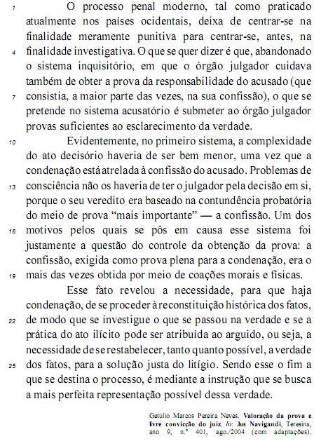 A argumentação do autor centra-se nessas duas ideias: condenação da imputação da pena baseada na confissão do acusado e valorização da instrução processual na busca de provas suficientes para uma solução justa do litígio.