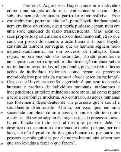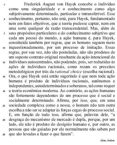 Ao afirmar que as pessoas guiadas pelo mercado 'normalmente não sabem por que são levadas a fazer o que fazem' (L.27-28), von Hayek retoma a ideia de que as ações humanas dependem de um processo social socialmente determinado.