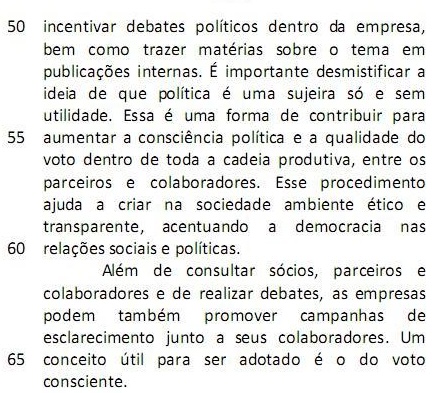 É importante desmistificar a ideia de que política é uma sujeira só e sem utilidade. (L.52-54)