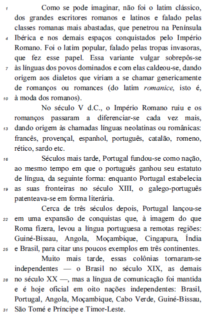 No contexto em que estão inseridas, as palavras “neolatinas” e “românicas”, ambas na linha 13, podem ser consideradas sinônimos.