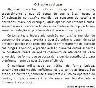 "O combate militarizado ao tráfico, de forma isolada, certamente será medida ineficiente na luta contra as drogas. Seus efeito, ao contrário, somente aumentará o custo da operação do tráfico, o que aumentará ainda mais sua lucratividade e formentará a corrupção".