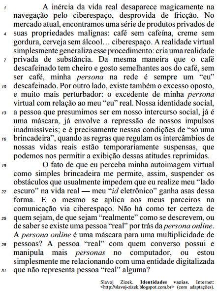 Seriam mantidas as relações sintáticas e semânticas do primeiro período do texto, caso o termo “desprovida” (l.2) fosse substituído por desprovido, passando, assim, a concordar com o elemento imediatamente anterior: “ciberespaço”.
