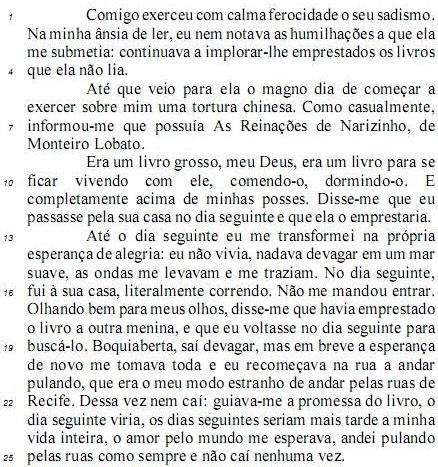 Na oração “guiava-me a promessa do livro” (l.22), o pronome “me” exerce a função de complemento da forma verbal “guiava”.