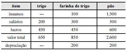 país. A tabela abaixo apresenta, em unidades monetárias, os