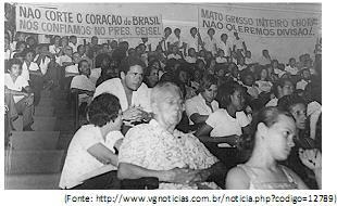 Na imagem acima, manifestantes apresentam faixas com os seguintes dizeres: “ Não corte o coração do Brasil". Nós confiamos no Pres. Geisel" e Mato Grosso inteiro chora: não queremos divisão!" . Esta imagem é um testemunho de um momento importante na história recente do território matogrossense e se refere