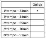 Os times X (Nacional) e Y (São Raimundo) jogaram pelo campeonato amazonense e 5 gols foram marcados. Sílvio viu o jogo e fez uma lista da ocorrência dos gols como mostra o quadro abaixo.
