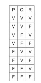 Nesse caso, a última coluna dessa tabela-verdade apresenta exatamente três valores V.