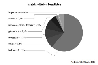 O gráfico precedente mostra a composição da matriz elétrica brasileira de 2020. Com base nessas informações, julgue o item a seguir.
