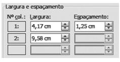 Um usuário do MS-Word 2010 configurou a página do documento que estava editando em colunas, utilizando um dos seguintes tipos predefinidos de formatação de página em colunas: