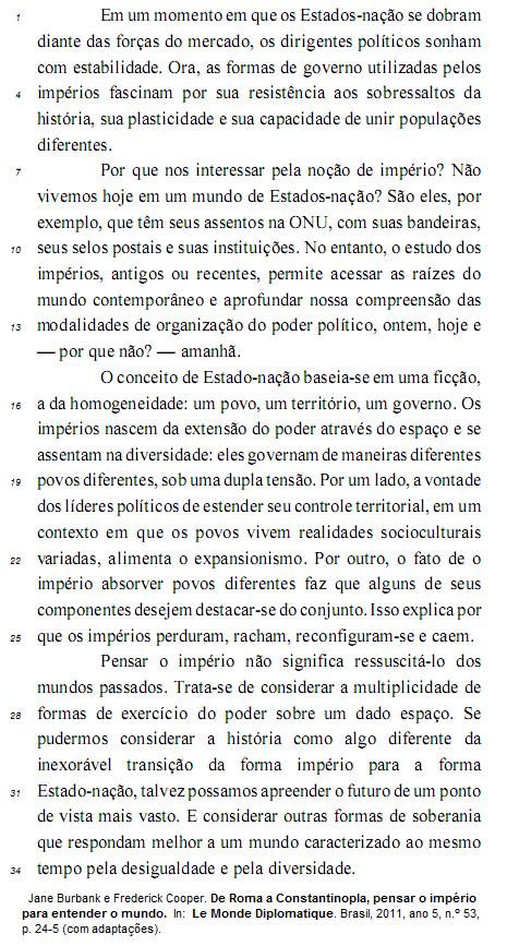 Em cada um dos itens a seguir, são apresentadas propostas de reescrita do trecho “No entanto, o estudo dos impérios, antigos ou recentes, permite acessar as raízes do mundo contemporâneo e aprofundar nossa compreensão das modalidades de organização do poder político” (L.10-13). Julgue-os com relação à correção gramatical