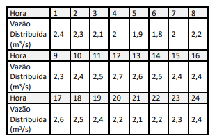 Segundo a NBR 12.217/1994, Reservatório de Distribuição é o elemento do sistema de abastecimento de água destinado a regularizar as variações entre as vazões de adução e de distribuição e condicionar as pressões na rede de distribuição. Ainda segundo esse instrumento legal, o volume necessário para atender às variações de consumo deve ser avaliado a partir de dados de consumo diário e do regime previsto de alimentação do reservatório, aplicando-se o fator 1,2 ao volume assim calculado, para levar em conta incertezas dos dados utilizados. Observe a variação da demanda horária distribuída em uma cidade no dia de maior consumo: