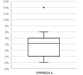 A seguir, é apresentado um gráfico de boxplot, que ilustra os retornos mensais das ações de uma empresa