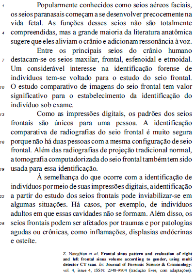 o segundo e o terceiro parágrafos passassem a compor um único parágrafo mediante a união de ambos de uma das seguintes formas: (...) da identificação do indivíduo sob exame, porquanto, como as impressões digitais, (...) ou (...) da identificação do indivíduo sob exame, uma vez que, como as impressões digitais, (...).