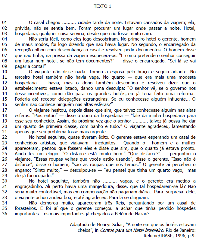III. "Sinto muito," [o gerente] desculpou-se ― "eu pensei que tinha um quarto vago, mas ele já foi ocupado." (l.28-29)
