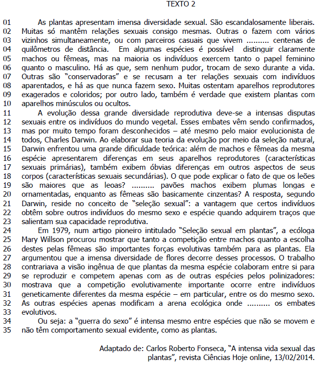 I. De acordo com o primeiro parágrafo, as plantas são "escandalosamente liberais" em termos de sexo especialmente porque há espécies que distinguem claramente entre machos e fêmeas.