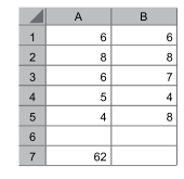 Tem-se a seguinte planilha, criada no Microsoft Excel 365, em sua configuração padrão, onde a célula A7 contém a função =SOMA(A1:B5), exibindo assim o valor 62: