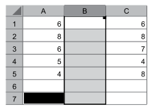 Nessa coluna em branco, o usuário inseriu o valor 1 em todas as células de B1 até B5, conforme imagem a seguir.