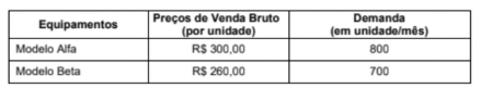 A empresa Nexora S.A. produz dois modelos de equipamentos eletrônicos: Alfa e Beta. A fim de analisar o retorno que cada um desses modelos estava trazendo à empresa, o departamento de contabilidade fez o seguinte levantamento de dados em dezembro de 2024:
