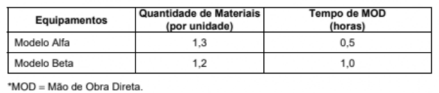 - Dos custos fixos, sabe-se que R$ 70.400,00 são consumidos na produção do modelo Alfa, enquanto R$ 46.200,00 são consumidos na produção do modelo Beta; -Quando há necessidade de alocação de custos fixos e/ou de despesas fixas aos objetos de custeio, a empresa utiliza como base de alocação o volume de equipamentos produzidos;