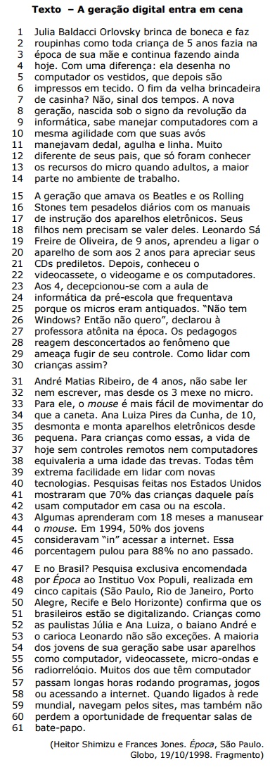 Diante da precoce desenvoltura das crianças citadas no texto, os (as)