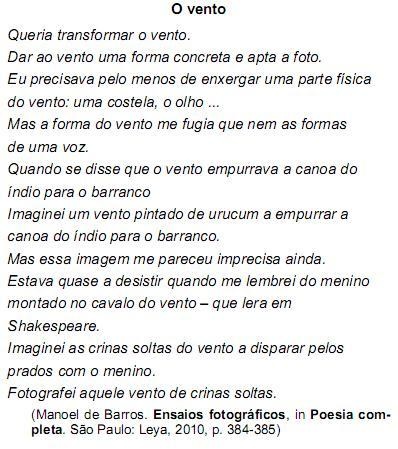 As questões de números 19 e 20 referem-se ao texto. Considere as afirmativas seguintes: I. Torna-se tarefa impossível obter imagens precisas de elementos da natureza, porque se manifestam de forma abstrata.