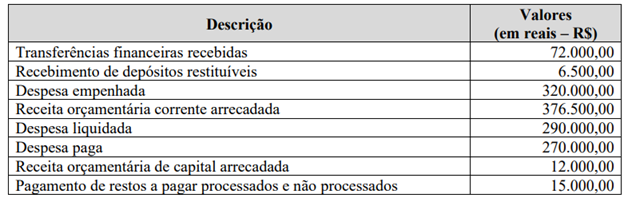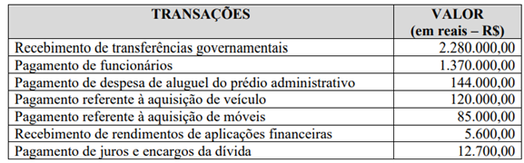 Um Consórcio Público apresentou as seguintes transações registradas no razão contábil das contas que integram o subgrupo patrimonial Caixa e Equivalentes de Caixa: