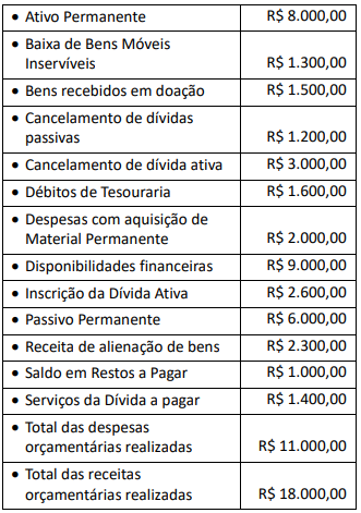 Para responder à questão, considere que as informações abaixo foram extraídas da contabilidade de uma entidade pública referente ao exercício financeiro de 2023.