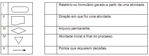 Considerando os símbolos convencionados para os fluxogramas e os sentidos a eles atribuídos, numere a segunda coluna de acordo com a primeira.