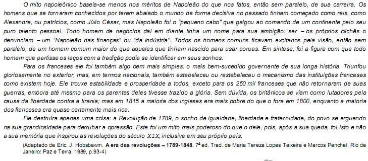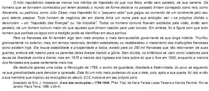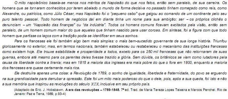 III. Ele destruíra apenas uma coisa: a Revolução de 1789, o sonho de igualdade, liberdade e fraternidade, do povo se erguendo na sua grandiosidade para derrubar a opressão. (3o parágrafo)