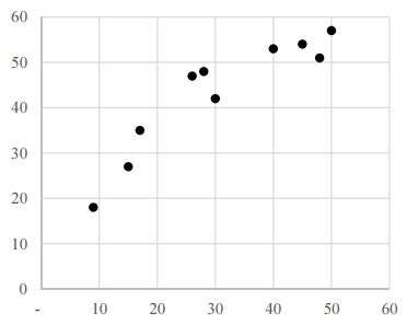 Dispondo de uma série de estatísticas de ordem x1 ≤ x2 ≤ ... ≤ x20, um analista calculou a mediana me da série e os números ui = me − xi e vi = x(21 − i) − me, para i = 1, 2, ..., 10. A partir desses números, o analista plotou os pares ordenados (ui, vi) em um plano cartesiano, obtendo o gráfico a seguir.