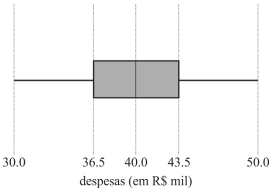 A partir da situação hipotética e com base na figura precedente, que mostra o diagrama de caixa ( boxplot ), julgue o item a seguir. Pelo menos metade da amostra encontra-se no intervalo entre R$ 36,5 mil e R$ 43,5 mil.