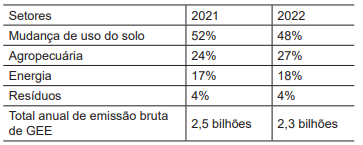 A partir da observação da tabela a respeito das emissões de gases do efeito estufa do Brasil e do perfil brasileiro de emissões, identifica-se que