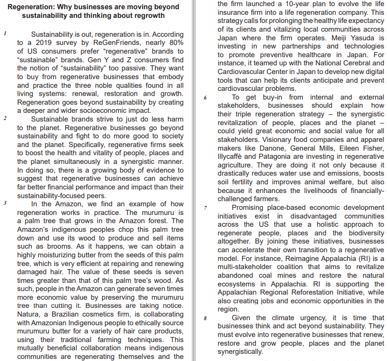 Available at: https://www.weforum.org/agenda/2024/06/businesses -are-moving-beyond-sustainability-welcome-to-the-age-ofregeneration/. Retrieved on: Jun 14, 2024. Adapted.