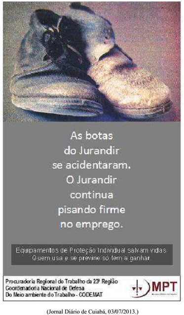 Em relação à propaganda, analise as afirmativas. I - As botas já desgastadas, como mostra a figura, causam acidentes, por isso foi feita a propaganda. II - A intenção da propaganda é estimular o uso de equipamentos de proteção individual pelo trabalhador. III - A figura das botas tem caráter metafórico, simboliza o equipamento que pode salvar a vida de quem o usa. IV - A propaganda se dirige diretamente aos fabricantes de equipamentos de proteção individual no sentido de aperfeiçoar cada um para garantir a saúde do trabalhador. Estão corretas as afirmativas