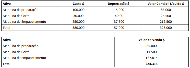 • Valor de compra do bem: $400; • Custo de Reposição do bem: $320; • Preço estimado de venda para terceiros: $800; • Custos estimados para preparar o bem para vender: $240; • Gastos estimados para vender o bem: $120.