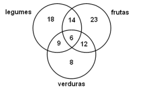 “Um recente levantamento divulgado pelo Instituto Brasileiro de Geografia e Estatística (IBGE) apontou que os brasileiros de menor renda têm comido menos frutas e verduras do que a população mais abastada. Estes, por outro lado, consomem mais cerveja, pizza, refrigerante e salgadinho.” O diagrama a seguir apresenta os resultados de uma pesquisa sobre o hábito de consumo diário de frutas, verduras e legumes de um grupo de 100 pessoas escolhidas aleatoriamente em uma cidade do estado do Rio de Janeiro.