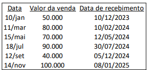 Uma sociedade empresária realizou as seguintes vendas a prazo no ano de 2023: