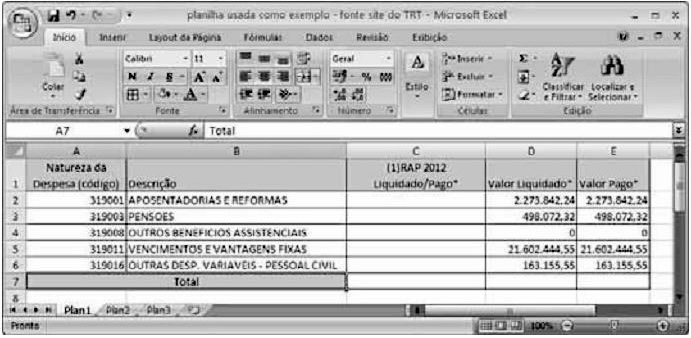 Caso a planilha acima apresentada seja copiada e colada em um texto em edição no BrOffice Writer, haverá uma duplicação do tamanho do arquivo em função da formatação da tabela.