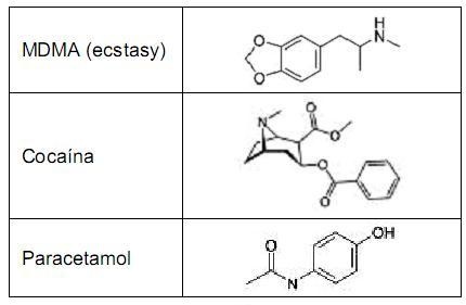 Durante processo de extração líquido-líquido de uma amostra de urina, foram extraídas duas frações para posterior análise por cromatografia de camada, sendo controlado o pH durante a extração. A primeira fração extraída foi a de substâncias de caráter básico, e a segunda fração, de substâncias de caráter ácido. Foram detectadas as substâncias expostas na tabela a seguir.