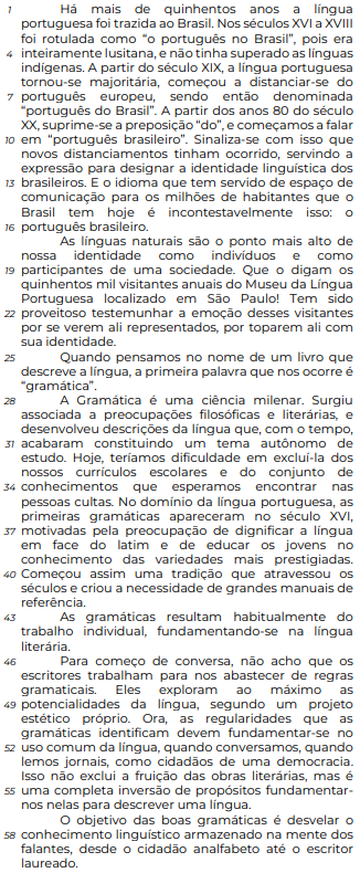 Em comparação às outras denominações dadas à língua falada no Brasil segundo o primeiro parágrafo do texto, entende-se que a expressão ‘português brasileiro’ (linha 10) distingue-se pelo emprego de ‘brasileiro’ como