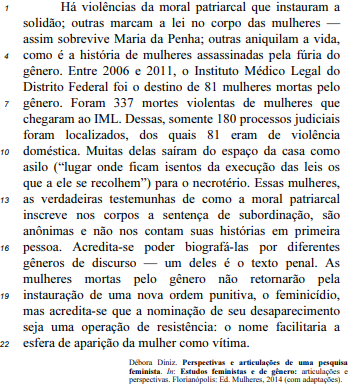 A autora defende que, ao se nominarem como feminicídio certos tipos de homicídio contra mulheres, coloca-se em evidência a situação feminina de vítima em um contexto em que as mulheres são tratadas de forma desigual em relação aos homens.