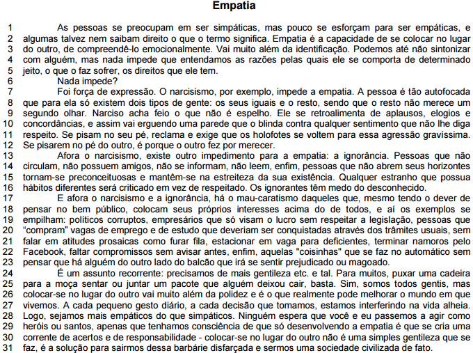 No trecho “Ninguém espera que você e eu passemos a agir como heróis ou santos, apenas que tenhamos consciência...” (linhas 28 e 29), os verbos passar e ter se referem a eventos que
