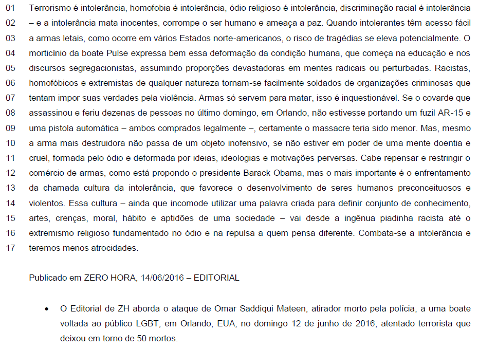 Leia as assertivas que seguem. I – O grupo “o enfrentamento da chamada cultura da intolerância” (linhas 12-13) pode ser substituído pela oração “que se enfrente a chamada cultura da intolerância”, com proximidade de sentido e sem prejuízo de valor para o entendimento do texto. II – A oração reduzida “assumindo proporções devastadoras em mentes radicais ou perturbadas” (linha 5) expressa ideia de condição no período em que está inserida. III – A oração desenvolvida “que tentam impor suas verdades pela violência” (linhas 6-7) pode ser substituída por “manipuladoras de suas verdades pela violência”, com proximidade de sentido e sem prejuízo de valor para o entendimento do texto. Assinale a opção correta.